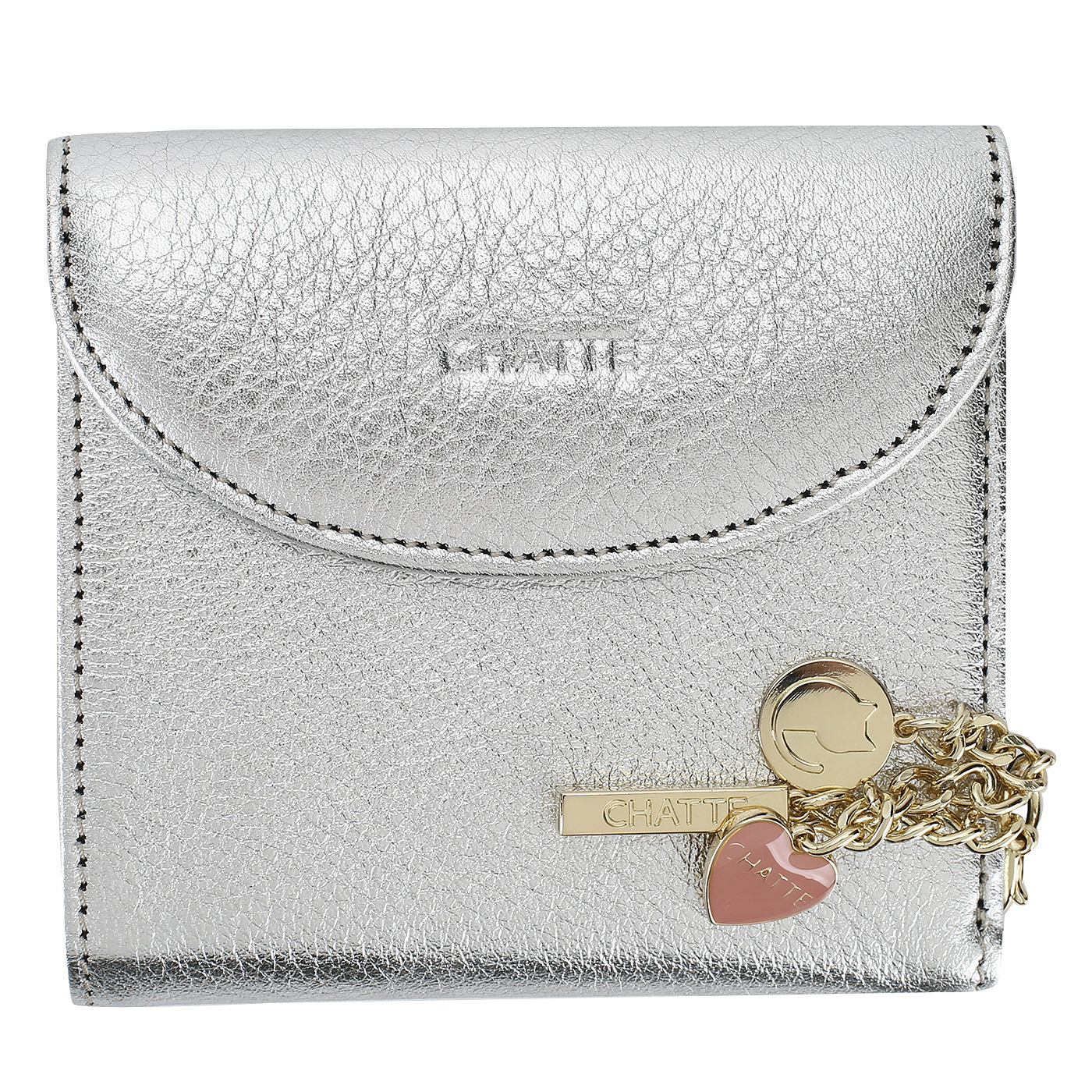 Складное кожаное портмоне Chatte Amelie shine CHA-6470SC/CIN/AE-6T_pc - 2000558256209 серебряный натуральная кожа 9,5 x 10 x 2 Цена 5148 руб. купить в интернет-магазине PanChemodan.ru в Томске