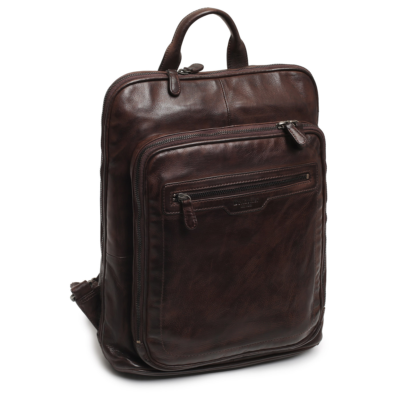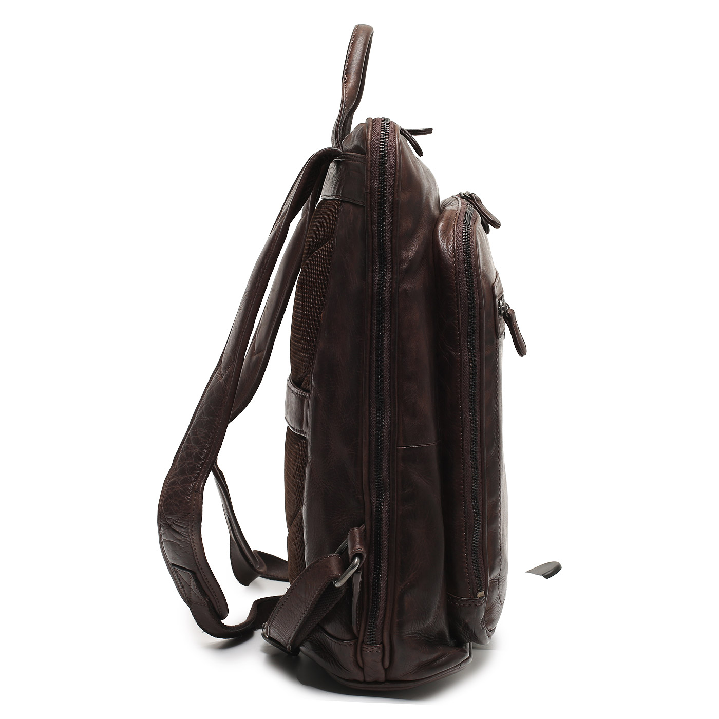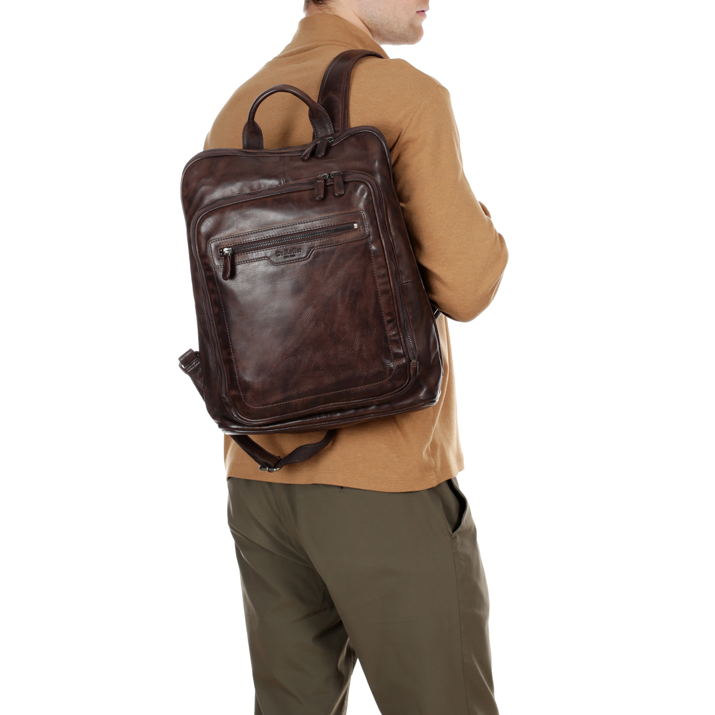 Кожаный мужской рюкзак на двойной молнии