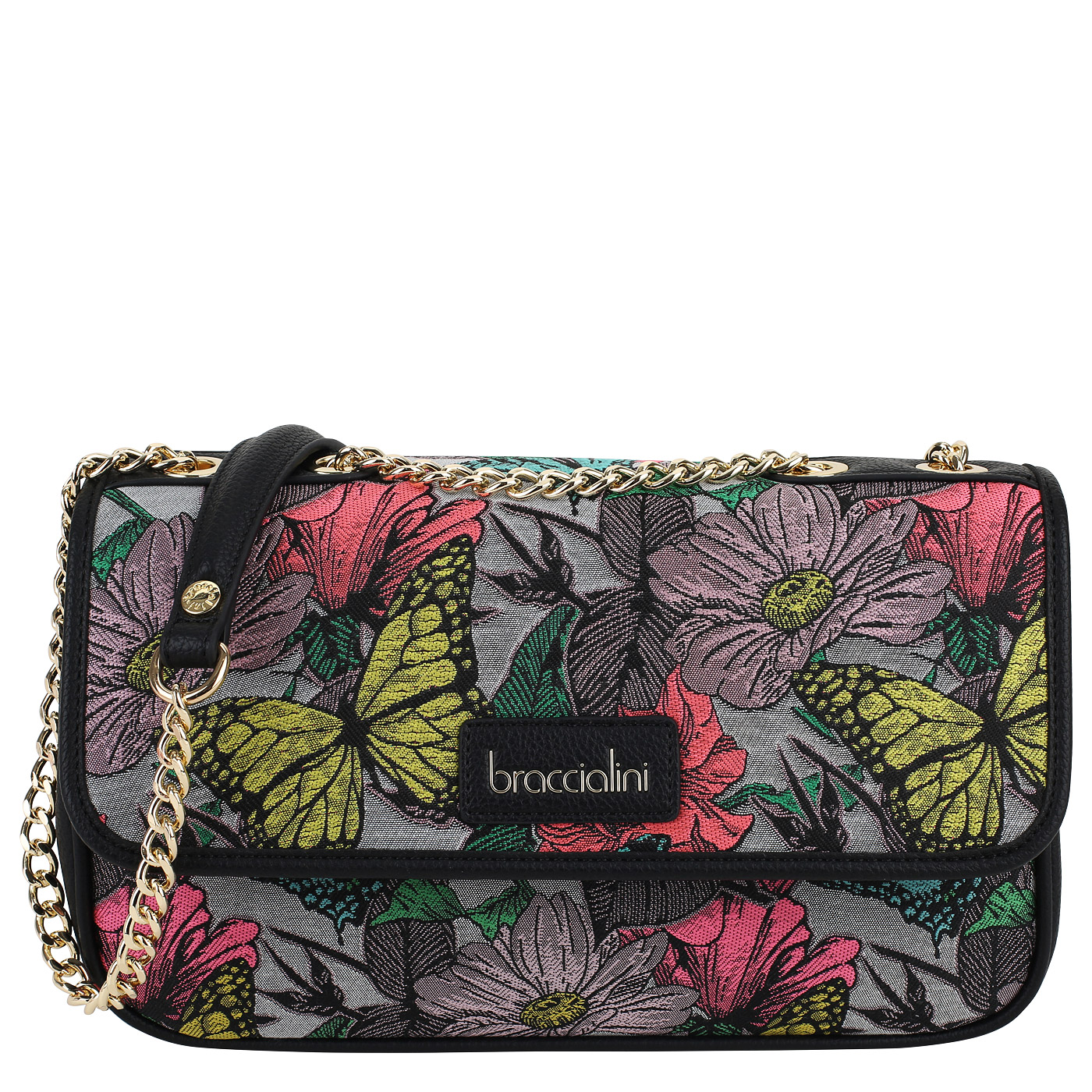 Сумка через плечо с цепочкой Braccialini Jacquard B17507-YY_nero/multi_pc - 2000558619721 черный полиэстер, полиуретан 30 x 19 x 12 Цена 11992 руб. купить в интернет-магазине PanChemodan.ru в Томске