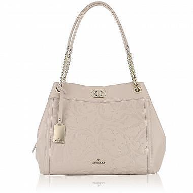Кожаная сумка с тиснением Aurelli 16W0045-86G-beige - 2000558010870 бежевый натуральная кожа 34 x 27 x 14 Цена 10486 руб. купить в интернет-магазине PanChemodan.ru в Томске